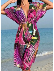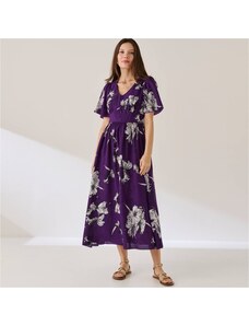 Blancheporte Dlouhé šaty s rozšířenými rukávy a potiskem květin tmavá fialová