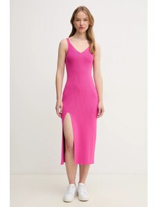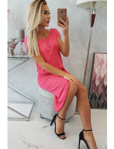 BASIC Růžové šaty s rozparkem -pink Tmavě růžová