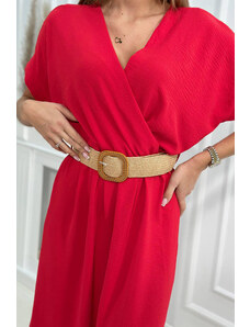 K-Fashion Dlouhé šaty s ozdobným páskem červené