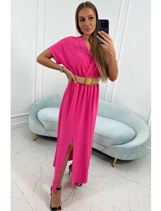 K-Fashion Dlouhé šaty s ozdobným páskem růžové