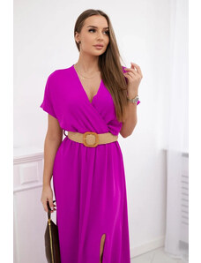 Numoco NINA šaty s psaníčkovým výstřihem, rukávy a páskem - fuchsiové 479-4