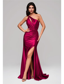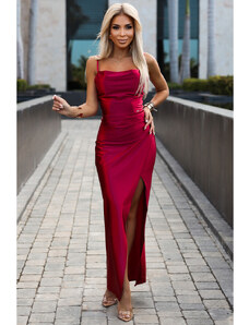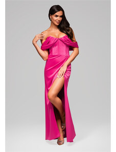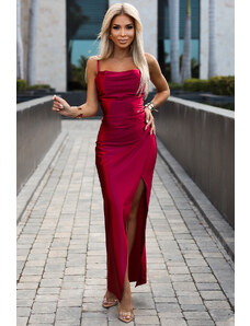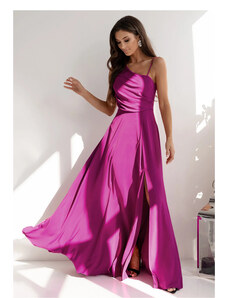 NUMOCO Tmavě růžové saténové šaty s rozparkem DIANE Tmavě růžová