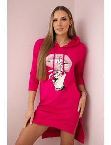 K-Fashion Šaty s kapucí a bočním rozparkem fuchsiová