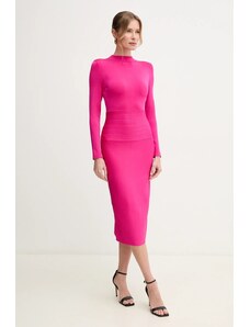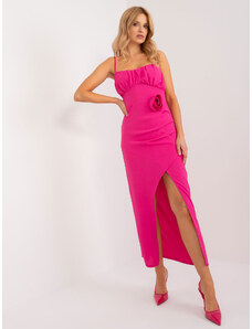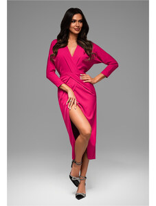 ITALY MODA Tmavě růžové midi šaty s rozparkem --fuchsia Tmavě růžová