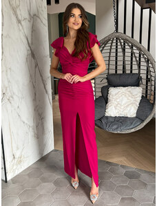 NUMOCO Elegantní fuchsiové maxi šaty DANIELE Fuchsiová