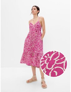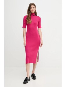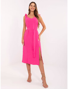 BASIC Tmavě růžové midi šaty s páskem --dark pink Tmavě růžová