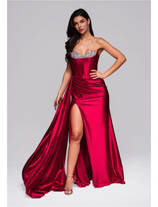 Večerní šaty Trendyol ve večerních šatech s fuchsiovou podšívkou tkané lesklé kameny