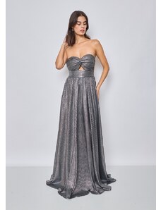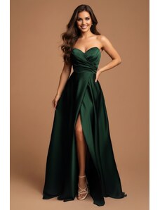 Numoco 589-6 Maxi šaty bez ramínek s korzetovým zavazováním na zádech a rozparkem - lahvově zelené