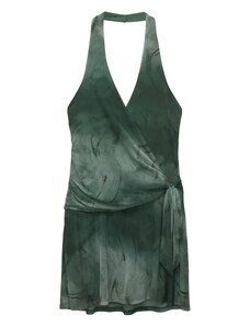Numoco Maxi šaty na ramínka s korzetovým šněrováním na zádech a rozparkem - lahvově zelená 589-6