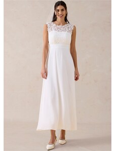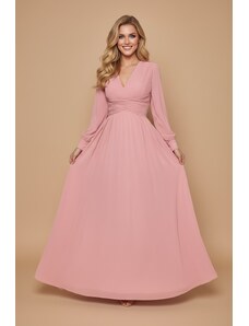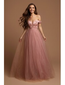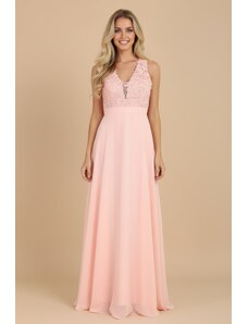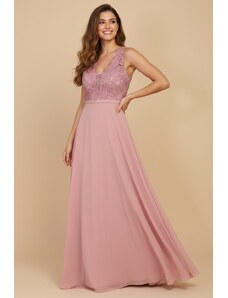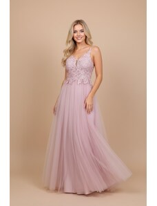 Numoco ELARA korzetové dlouhé šaty s rozparkem a vázáním na zádech béžové Béžová