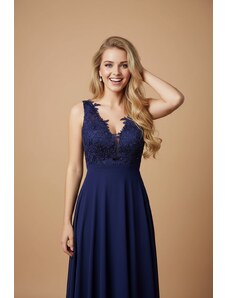 NUMOCO Tmavě modré dlouhé šaty bez rukávů VIVIANA Tmavě modrá