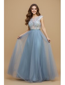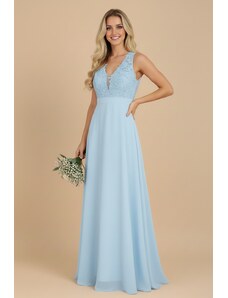 Numoco ELARA korzetové dlouhé šaty s rozparkem a vázáním na zádech světle modré Světle modrá