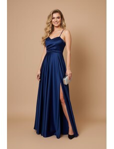 EVA & LOLA Společenské saténové šaty TERESA tmavě modré Barva: Tmavě modrá,