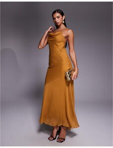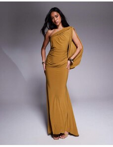 ASOS DESIGN Premium asymmetric one sleeve maxi dress with draped back in bronze-Brown