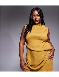 ASOS Curve ASOS DESIGN Curve asymmetric drape mini dress in bronze mist-Yellow