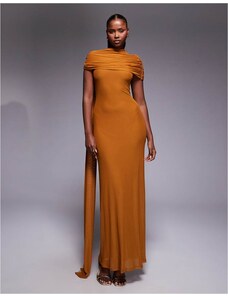 ASOS DESIGN mesh cape detail maxi dress with draped back in burnt yellow