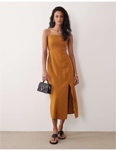ASOS DESIGN hybrid corset bias midaxi dress in ochre-Yellow