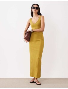 ASOS DESIGN wide rib sleeveless V neck midi dress in mustard-Green