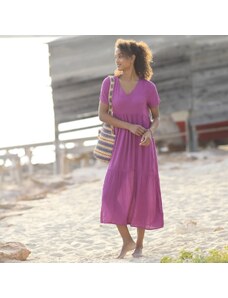 Blancheporte Kreponové dlouhé jednobarevné šaty s výstřihem do V purpurová