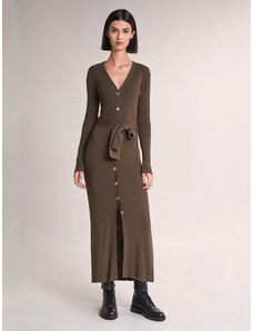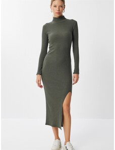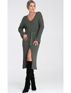 FIGL Olivově zelené dámské pletené šaty s viskózou Tmavě zelená