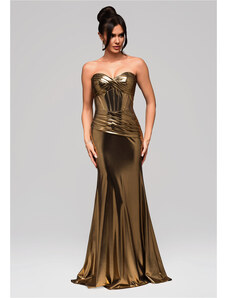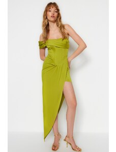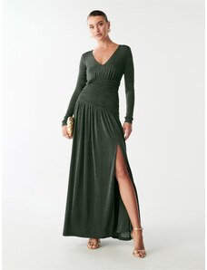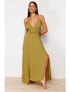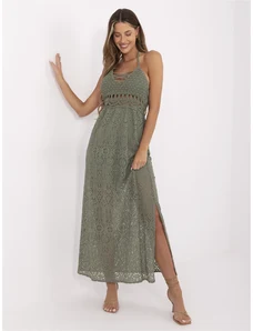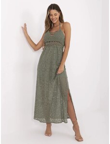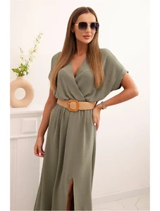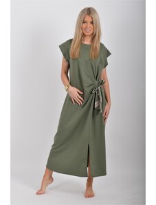 K-Fashion Dlouhá šaty s ozdobným pásem jasné khaki