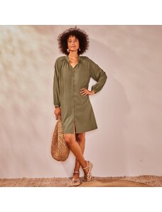 Blancheporte Dlouhé šaty s potiskem, knoflíčky a 3/4 pagodovými rukávy khaki