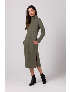 K-Fashion Šaty s kapucí a bočním rozparkem v barvě khaki
