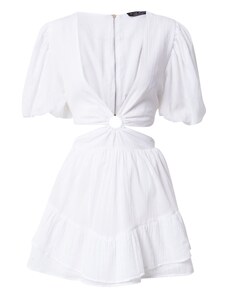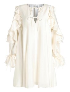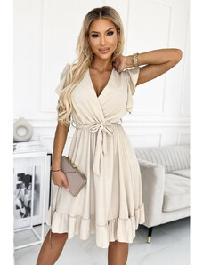 Numoco basic Numoco CORNELIA šaty s volánkem, výstřihem a kravatou - béžové 455-1