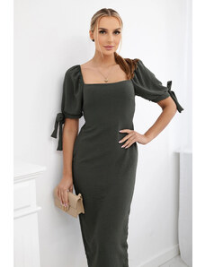 K-Fashion Šaty vzadu nařasené se zavazovacími rukávy khaki
