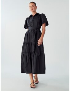 NUMOCO Elegantní šaty s volánem VANESSA Černá