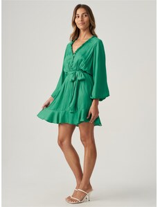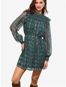 NUMOCO Tmavě zelené šaty s volánem ELVIRA Tmavě zelená