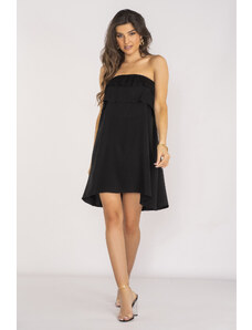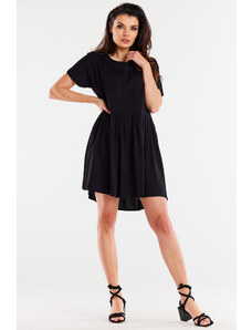 Makover K128 Jednoduché šaty áčkového střihu s mašlí - černé