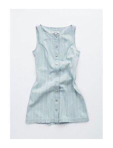 Topshop denim v neck mini dress in red and indigo stripe-Blue