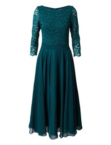 NUMOCO Elegantní zelené krajkové dlouhé šaty s výstřihem ELISA Tmavě zelená