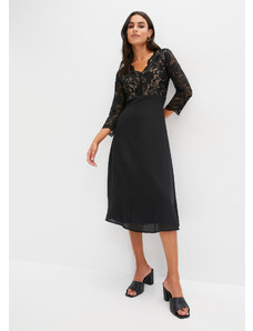 Bonprix Midi šaty z jemného šifonu s krajkou modrá Žena