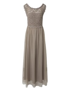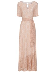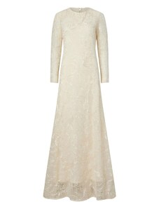 NUMOCO Elegantní béžové krajkové dlouhé šaty s výstřihem ELISA Béžová