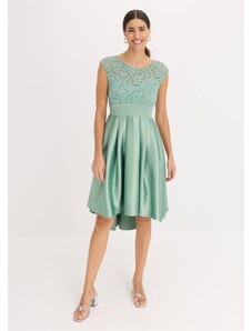 Bonprix Šaty s delším zadním dílem, z lesklého saténu s krajkou zelená Žena
