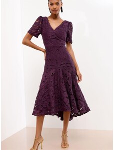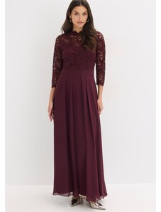 NUMOCO Bordó šifónové šaty s krajkovým výstřihem ALEXIS Vínová