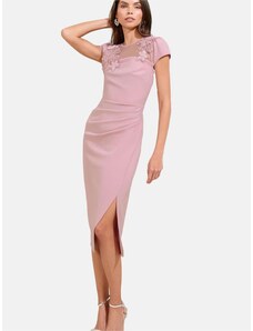 NUMOCO Dámské růžové elegantní šaty s krajkou ALESSANDRA Pudrová