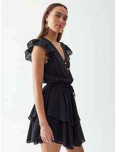 NUMOCO Elegantní šaty s volánem VANESSA Černá