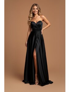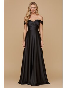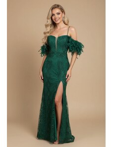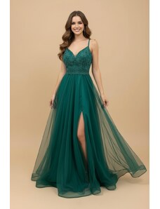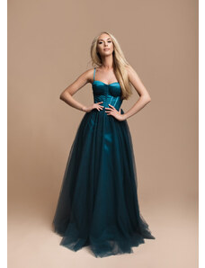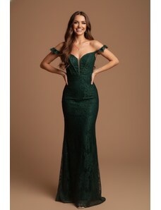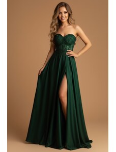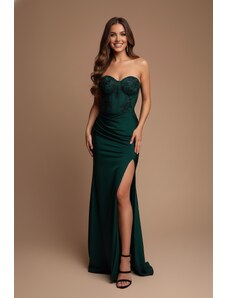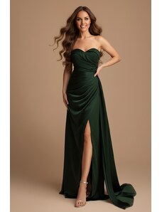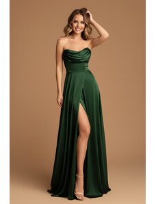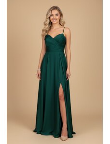EVA & LOLA Společenské saténové Šaty MADELEINE tmavě zelené Barva: Zelená,