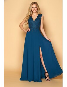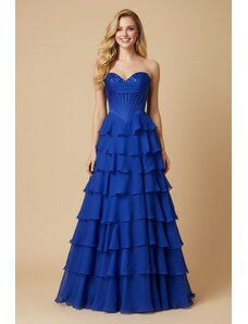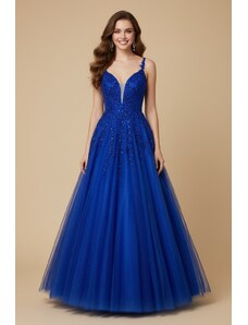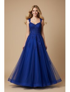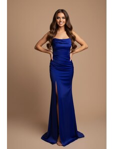 EVA & LOLA Společenské saténové Šaty PENELOPA královsky modré Barva: Modrá,