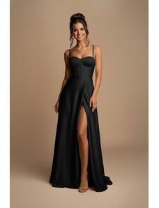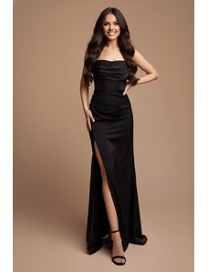 EVA & LOLA Společenské saténové Šaty MADELEINE tmavě modré Barva: Tmavě modrá,