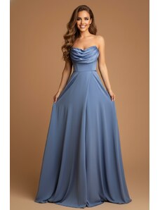 EVA & LOLA Společenské saténové Šaty RUTH světle modré Barva: Světle modrá,