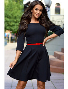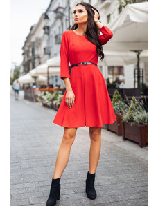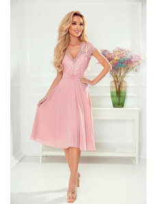 NUMOCO 311-19 LILA Klasické plisované šaty s krátkým rukávem a páskem pudrová ružová