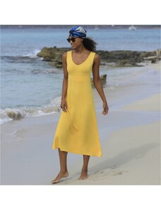 Blancheporte Kreponové jednobarevné midi šaty s výstřihem do V oranžová