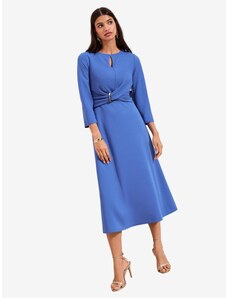 Blancheporte Mušelínové rozšířené midi šaty s výstřihem do V indigo