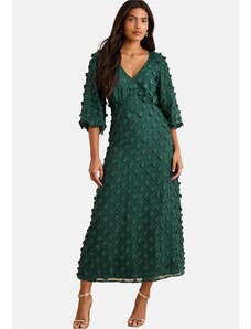Blancheporte Kreponové midi šaty s výstřihem do V a vícebarevným potiskem khaki/růžová