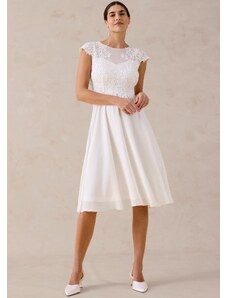 Bonprix Krajkové midi šaty s háčkovanou vsadkou modrá Žena