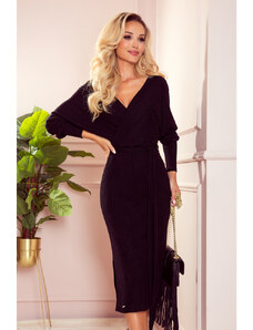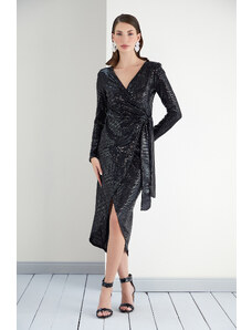 Černé flitrové zavinovací midi šaty CAROL